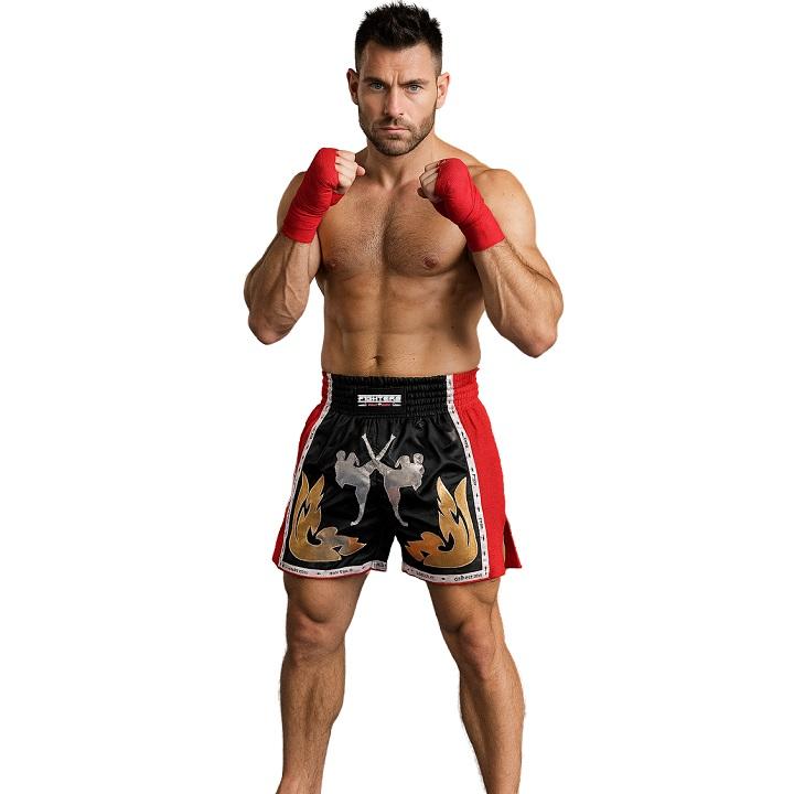 Die Kleidung der Thaiboxer besteht lediglich aus einer kurzen Hose. Ristschoner sind nicht obligatorisch. Thai Shorts sind meist kürzer als Box-Shorts, und sie sind breitbeinig, damit Sie schnell, hoch und kraftvollen Tritten ungehindert durchführen. Zusätzlich sind sie mit einem super starken 3 oder 4-Zoll dicken Bund, der mit einer schweren Kordel gesichert kann kommen. Thai Shorts gibt es in verschiedenen Arten von Materialien, nämlich, Nylon, Polyester und Satin kommen. Diejenigen, die aus Nylon sind die günstigste, aber sie sind schlechter in der Qualität. Satin Shorts sind weich und geschmeidig und von guter Qualität. Satin Shorts sind die am meisten bevorzugten Shorts unter Kämpfer. Polyester sind fast ähnlich in der Qualität Satin sind, aber sie sind leichter.